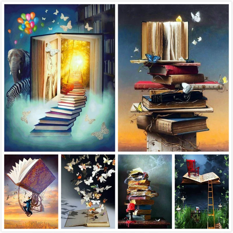 Алмазная живопись, Мультяшные книги, бабочки, квадратные алмазы, круглые алмазные украшения, настраиваемое украшение для стен, без рамки
