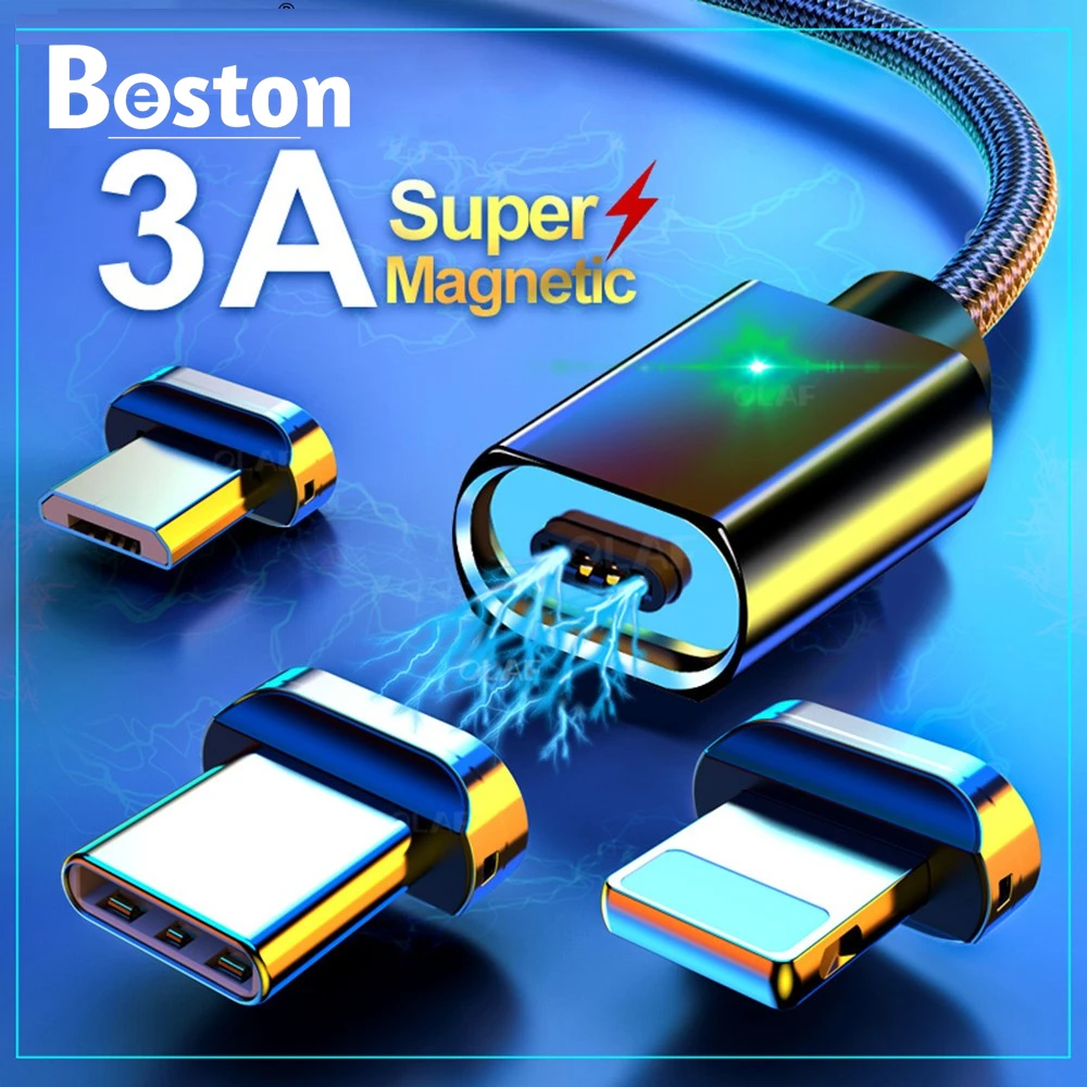 Магнитный кабель Micro USB OLAF 3A для iPhone Samsung, провод для б...