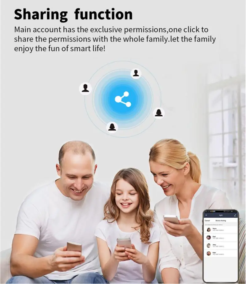 Главная учетная запись имеет эксклюзивные разрешения, один клик, чтобы поделиться разрешениями со всей семьей. Позвольте семье насладиться веселой умной жизнью!