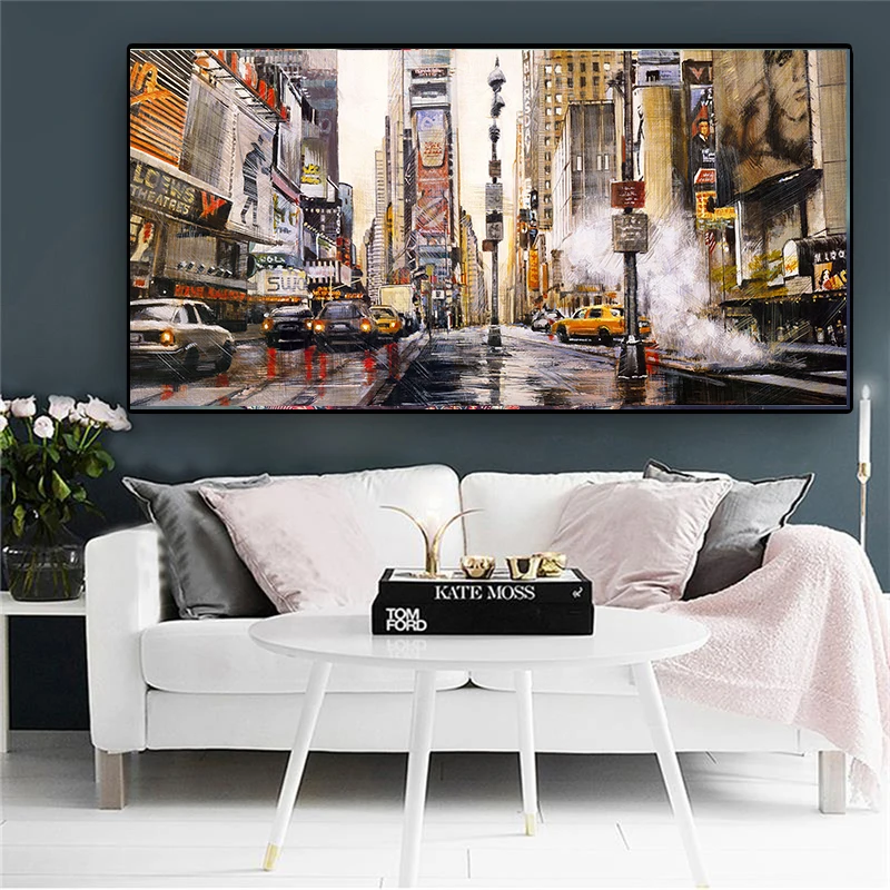 Абстрактная картина времени аквара, Нью-Йорк, картина маслом на холсте, дождливый город, Куадрос, Постер и печать, настенное искусство для гостиной