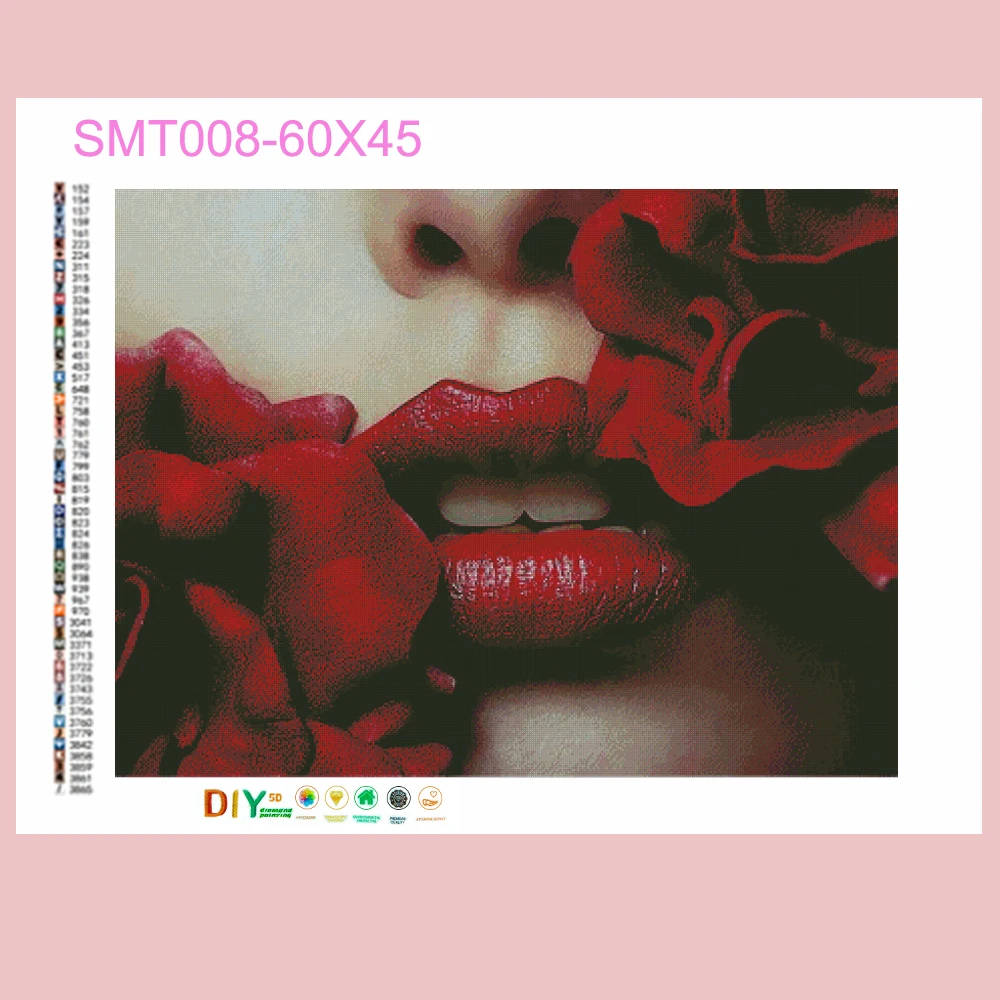 Алмазная картина 5D "сделай сам", красная губа, девушка, роза, полн...