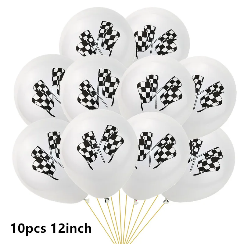 Латексные воздушные шары в черно-белую клетку, гоночная машина, фла...