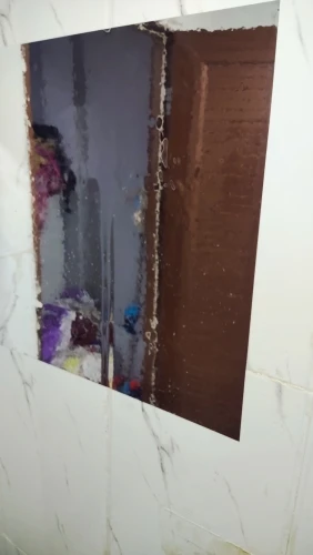 Пленка не прилипает к плитке ванной комнаты, и имеется зернистая текстура, которая делает зеркальное изображение очень размытым .. Материал пленки слишком тонкий ..