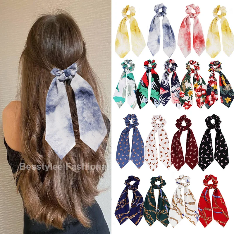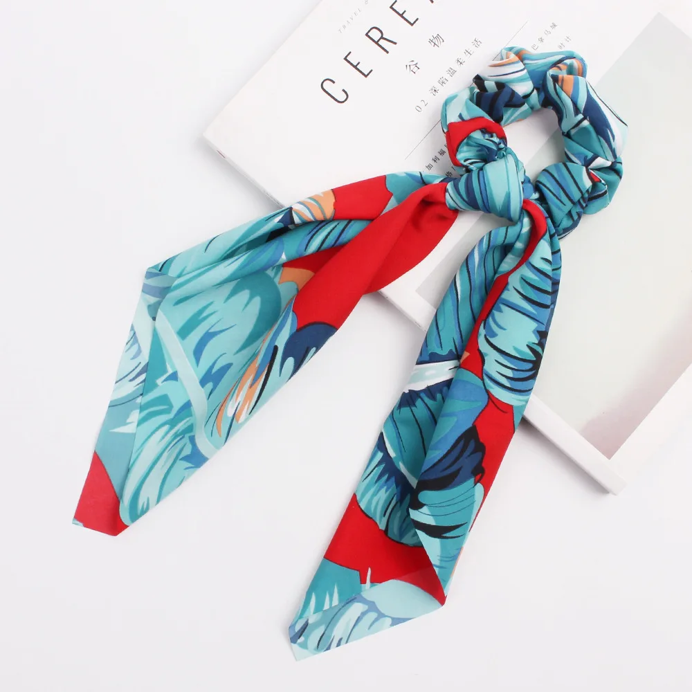 Резинка для волос с принтом тай-дай для Женский хвостик, модная эластичная лента для волос с шарфом, аксессуары для волос