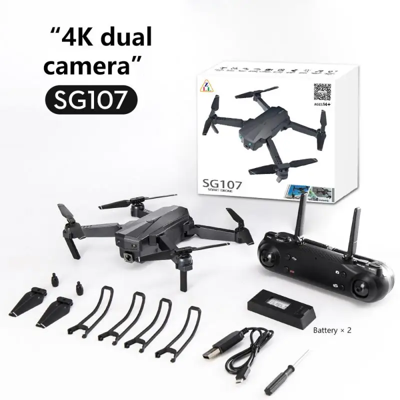 Дрон SG107, двойная камера 4K, широкоугольная, 50-кратный зум, Складная камера с оптическим потоком, WIFI