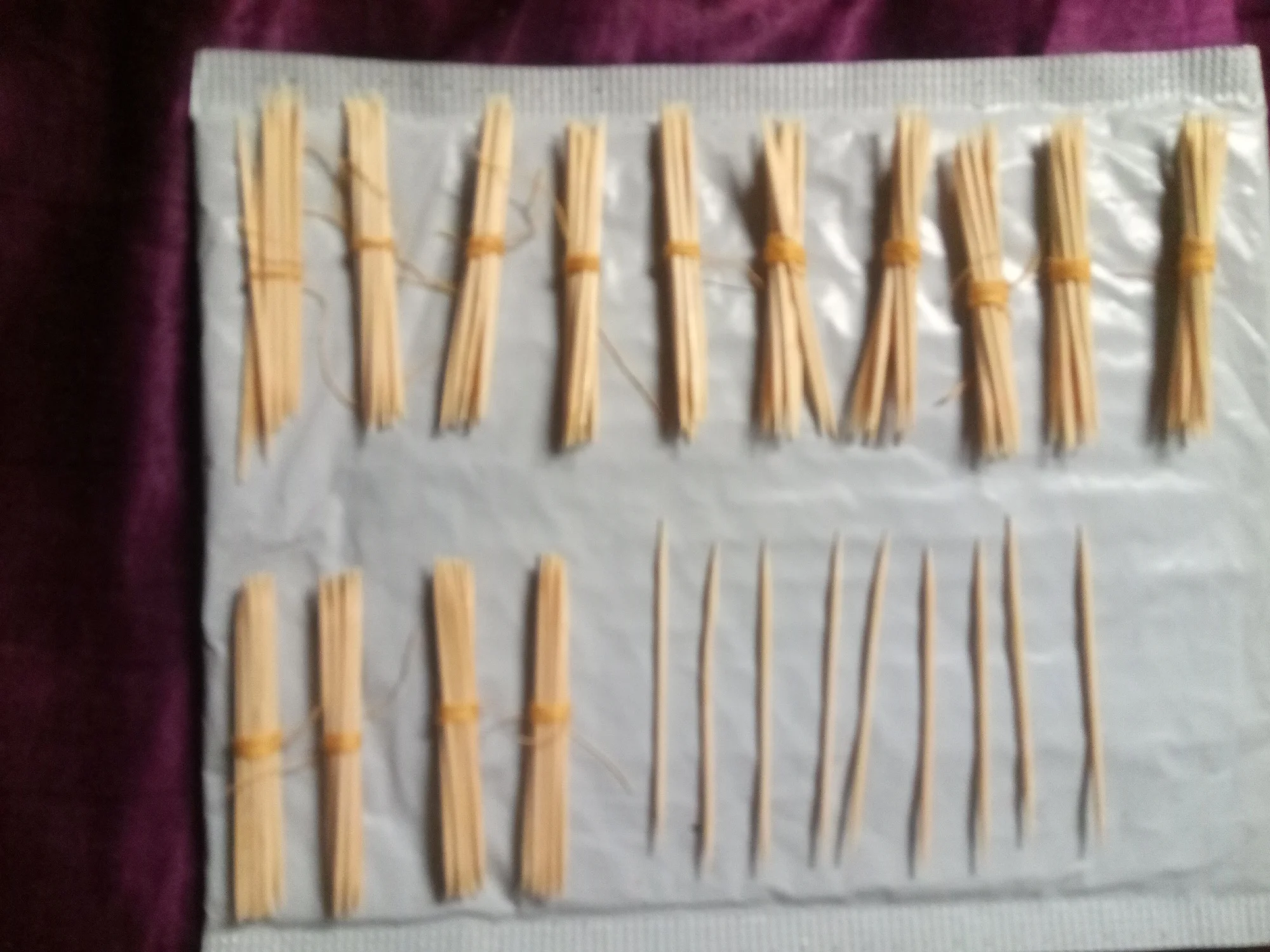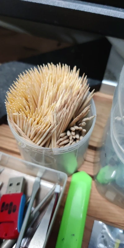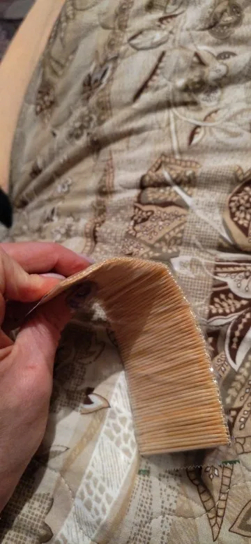 Всего 172 палочки в упаковке, две из них бракованы. Зубочистки ровные, очень тонкие.