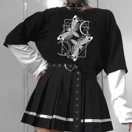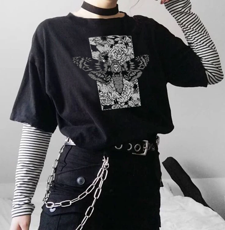 Эстетическое Готический смерть моли Для женщин Футболка Harajuku 90...