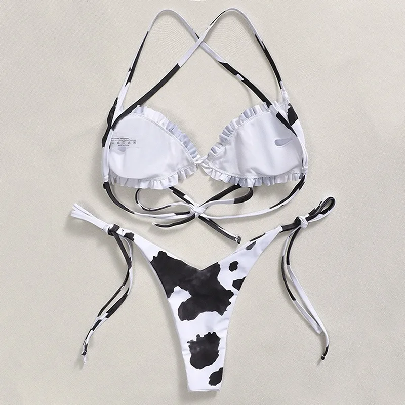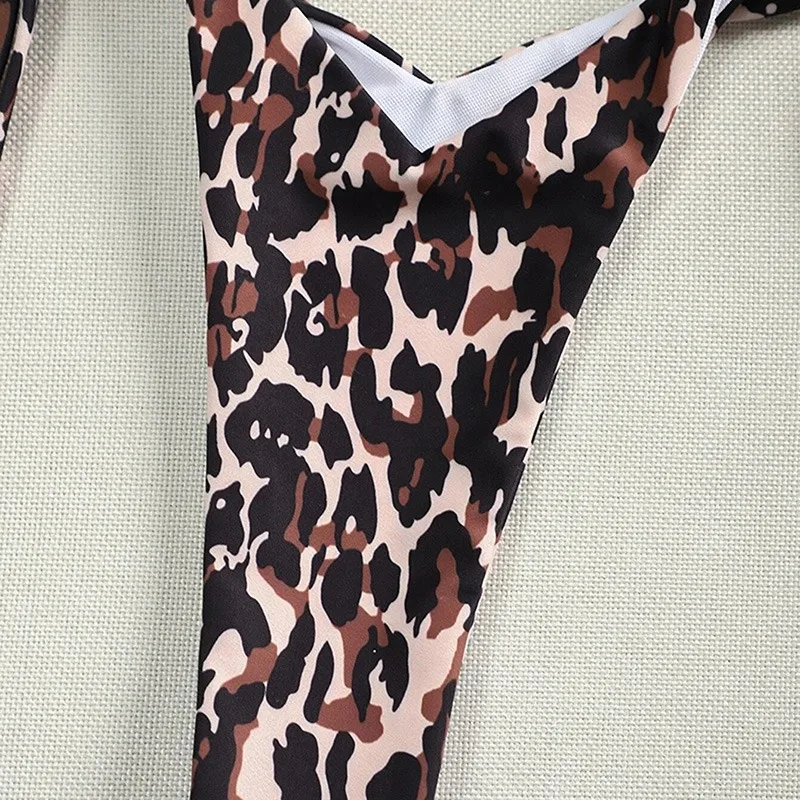 Женский купальный костюм, бикини с леопардовым принтом, пуш-ап, с заниженной талией, с лямкой на шее, бандажный пляжный комплект, купальник из двух предметов, бикини 2021