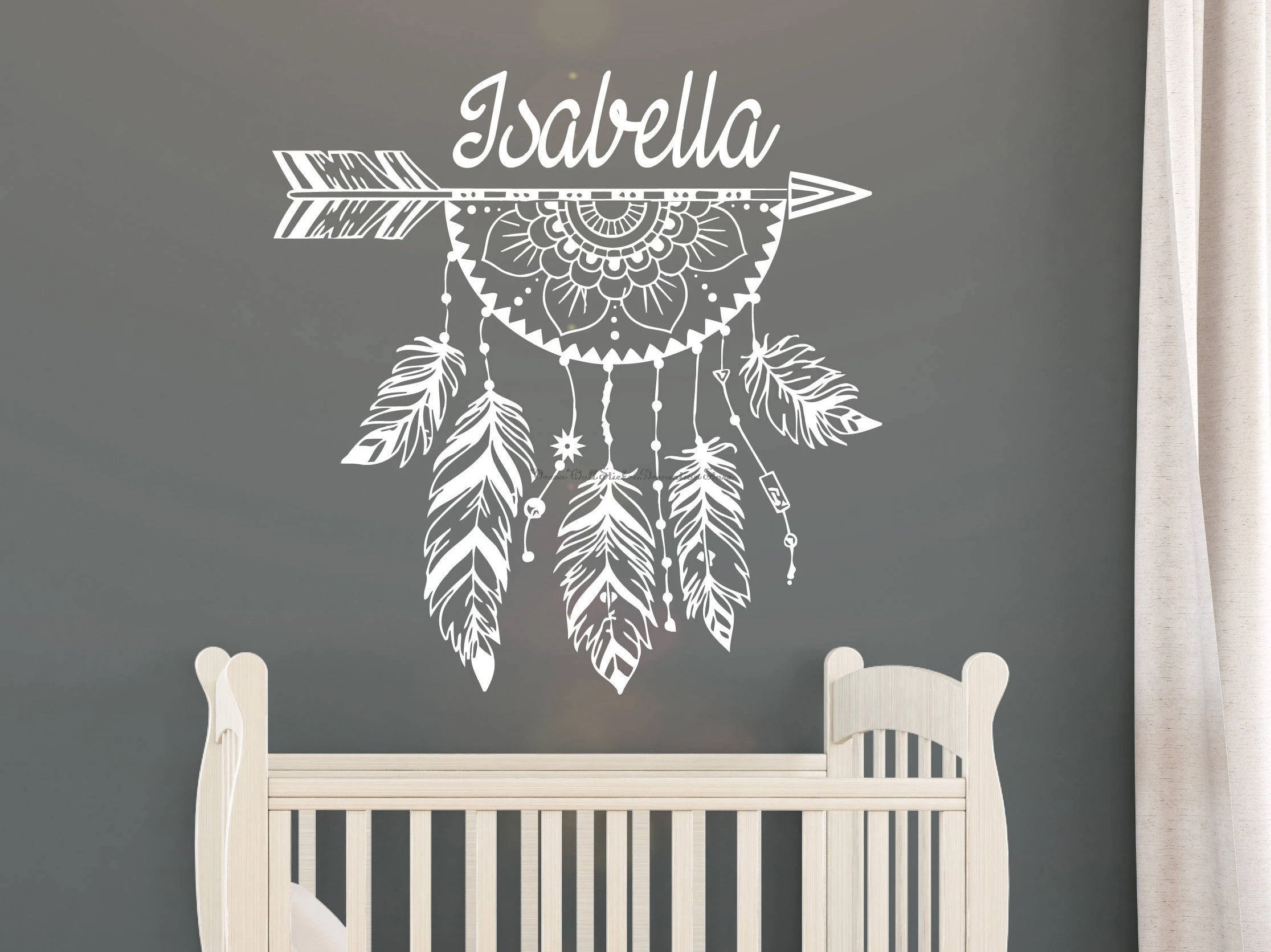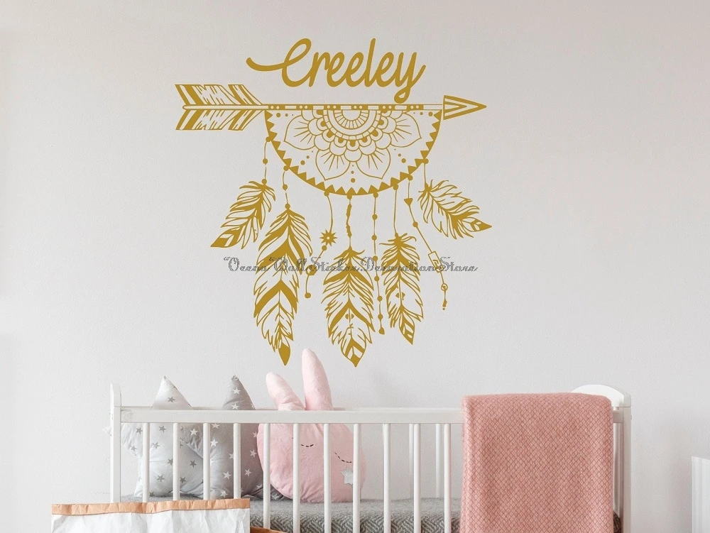 Богемный амулет, наклейка на стену, этническая принадлежность, можно изготовить на заказ, имя для детского сада, детской комнаты, семейная наклейка, D20