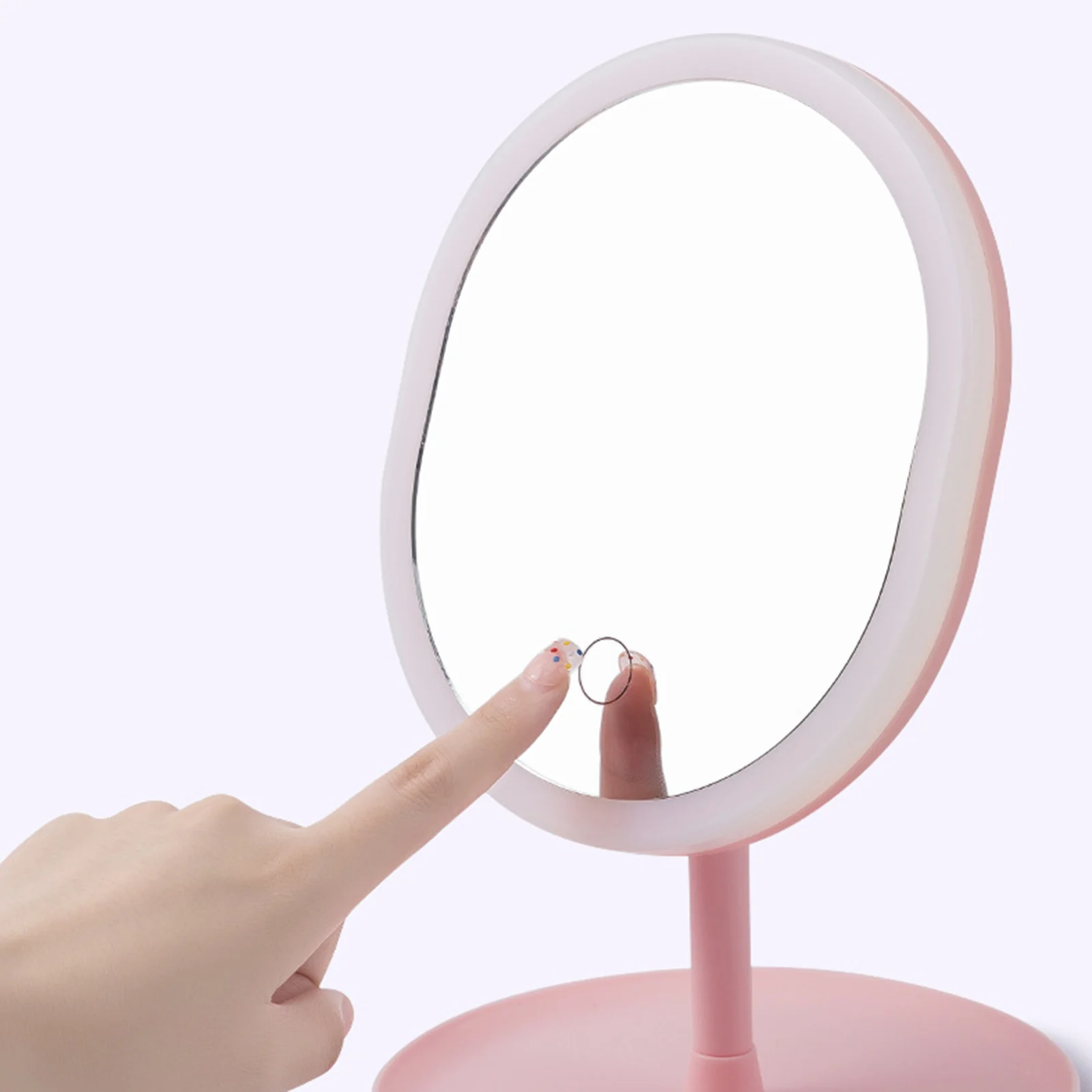 Зеркало для макияжа с лампой-хороший помощник для дам и девушек в нанесении макияжа. Он может осветлить ваше лицо в тусклом освещении, помогая вам сделать более деликатный макияж. Особенности: Зеркало может четко отражать все лицо. Лампа может обеспечивать естественное освещение в любой среде и устраняет надоедливые тени от окружающих источников светильник. Его можно отрегулировать назад, чтобы найти наилучший угол. Кнопка на экране зеркала для включения/выключения и регулировки яркости. На базу можно положить немного косметики. Характеристики: Материал: ABS Цвет: розовый Регулиросветильник: 1 шестерня, 3 шестерни (дополнительно) Форма основания: круглая, квадратная (по желанию) Емкость аккумулятора: литиевая батарея 1200 мАч Выходная мощность: 5 Вт (5 В/1 а) Размер товара: Круглый: 300*180 мм/11,81*7, 09 дюймов Квадрат: 300*185 мм/11,81*7, 28 дюймов Размер зеркала: 170*145 мм/6,69 * дюйма Вес посылка: 420 г/14,82 унций Посылка: 210*185*60 мм/8,27*7,28 * 2.36in Комплектация: 1 * зеркало для макияжа 1 * USB-кабель 1 * расческа