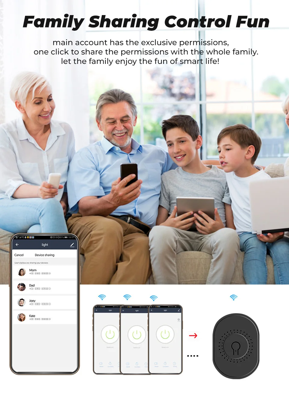Главная учетная запись имеет эксклюзивные разрешения, один клик, чтобы поделиться разрешениями со всей семьей. Пусть семья будет наслаждаться веселой умной жизнью!