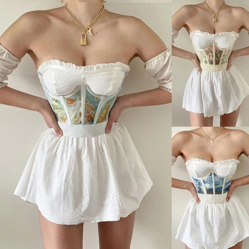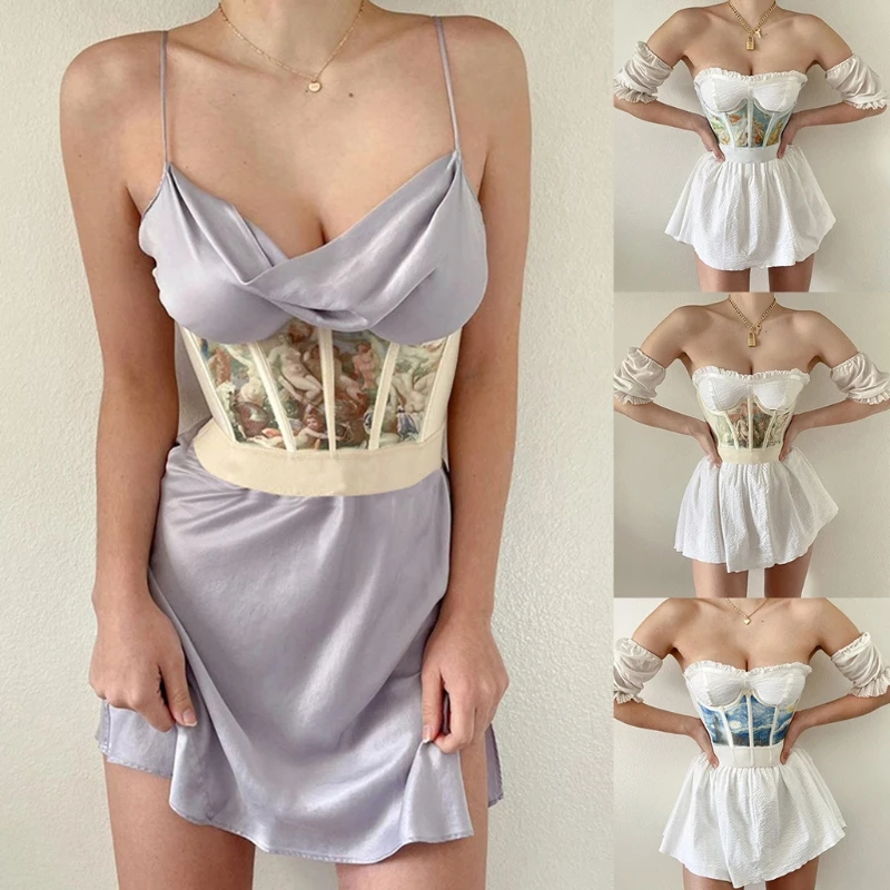 Винтажный художественный принт с изображением ангела, сексуальный корсет с эффектом пуш-ап под грудью, бюстье, утягивающий живот, короткая укороченная длина.