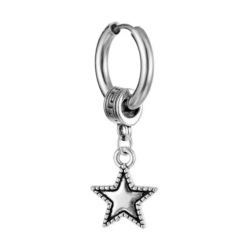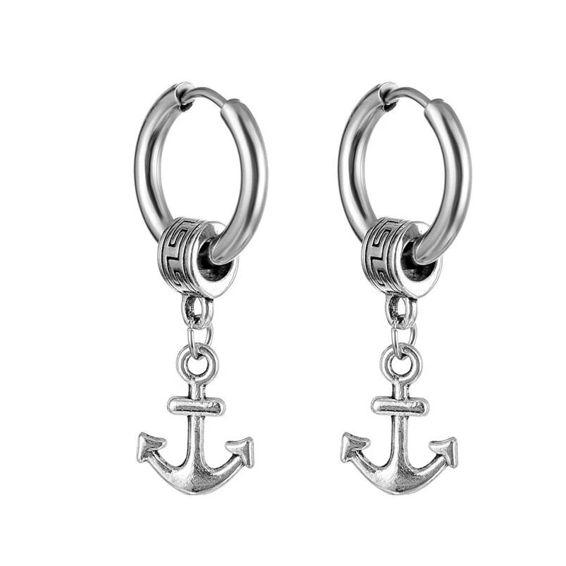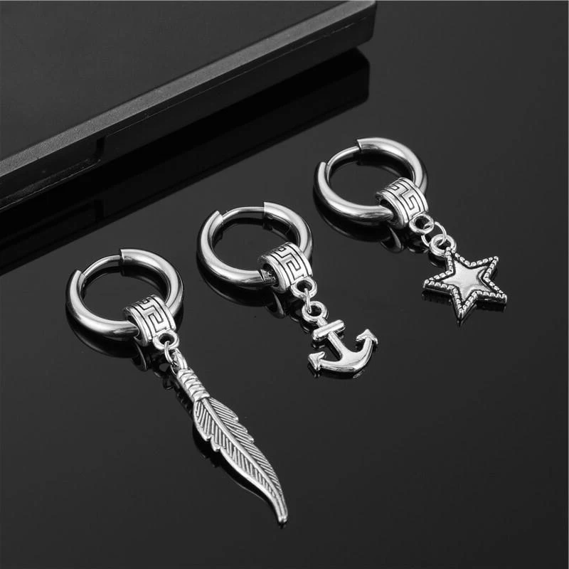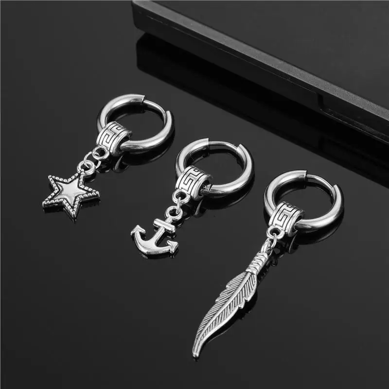Серьги-кольца в стиле панк для мужчин и женщин, Модные Винтажные вечерние ювелирные украшения из нержавеющей стали с перьями и звездами, якорем