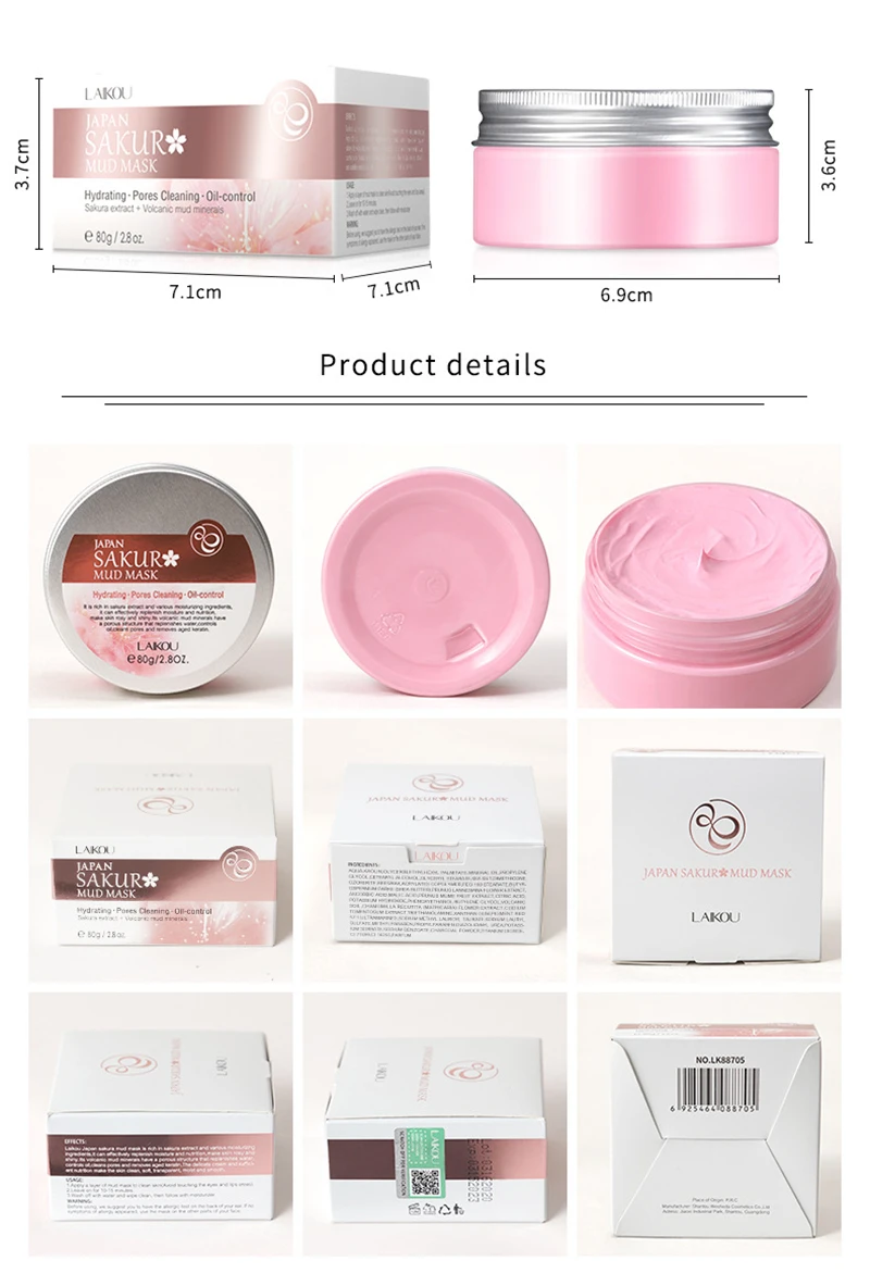 ЭффектыLAIKOU Japan Sakura Mud Mask богат экстрактом Сакуры и различными увлажняющими ингредиентами, которые могут эффективно восполнять влагу и питание, сделать кожу розовой и блестящей. С минералами вулканической грязи он может контролировать масло, очищать поры и удалять Состаренный кератин. Деликатный крем с достаточным питанием сделает кожу чистой, мягкой и гладкой.