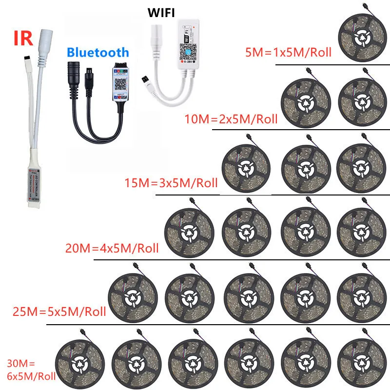 Светодиодные полосы светильник s инфракрасный Bluetooth WIFI RGB 5050 2835 5 м 10 м 15 м 20 м 25 м 30 м DC12V гибкая лента Fita светодиодная полоса освещения