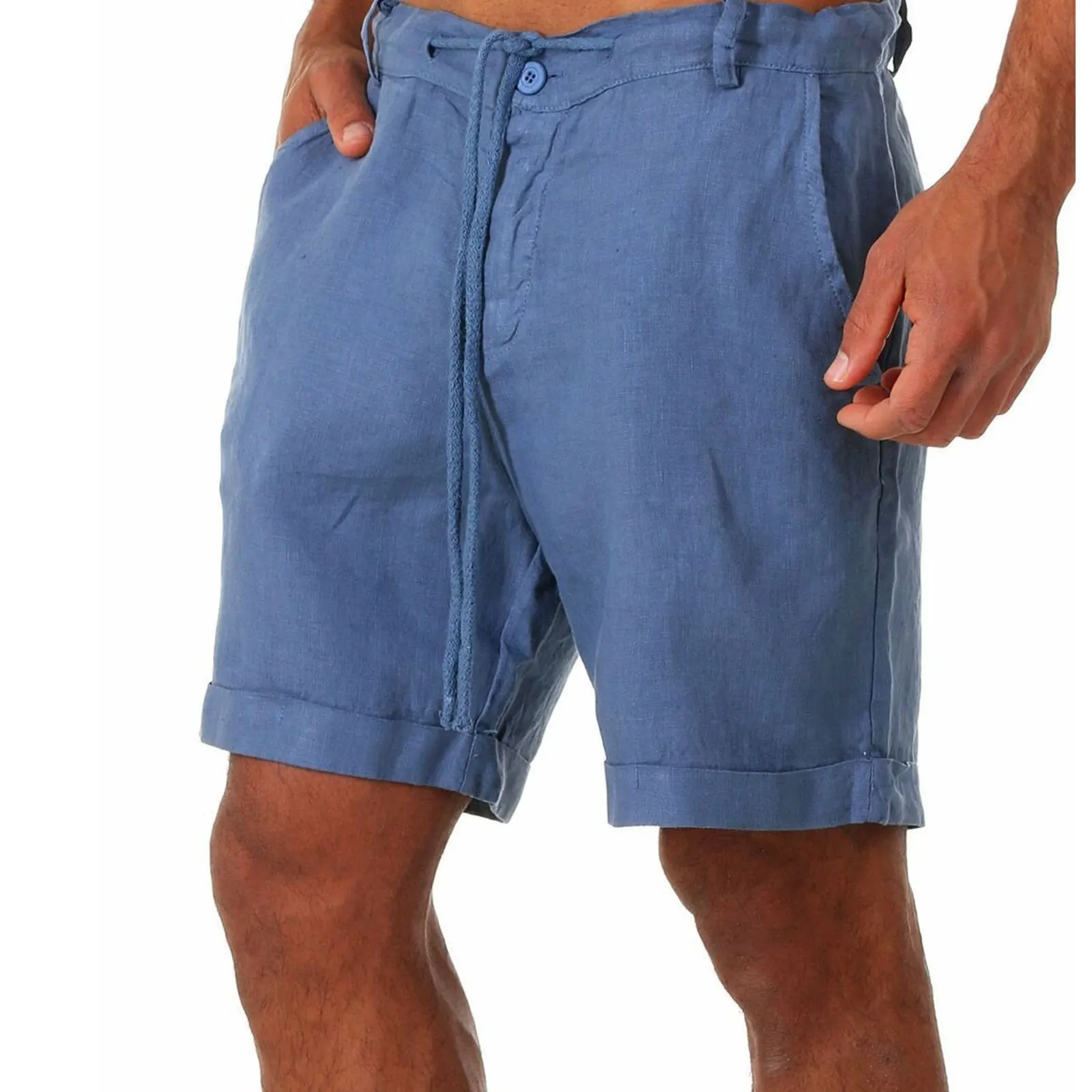 Шорты мужские спортивные из хлопка и льна, повседневные размера плюс с завышенной талией, однотонные, на шнуровке, спортивная одежда, S-3XL, лето 2021