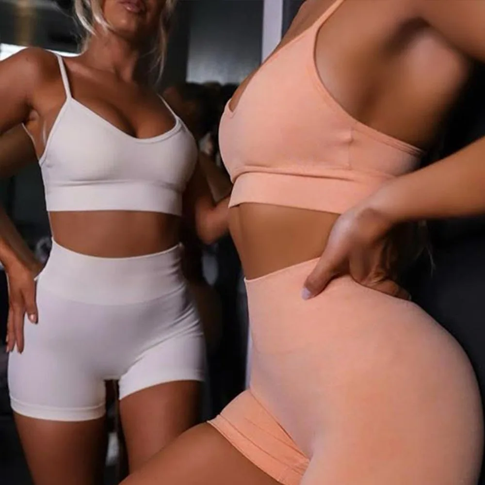 Комплект спортивный женский бесшовный для фитнеса и йоги, дышащий бюстгальтер, леггинсы для бега, шорты и топ, комплект из 2 предметов