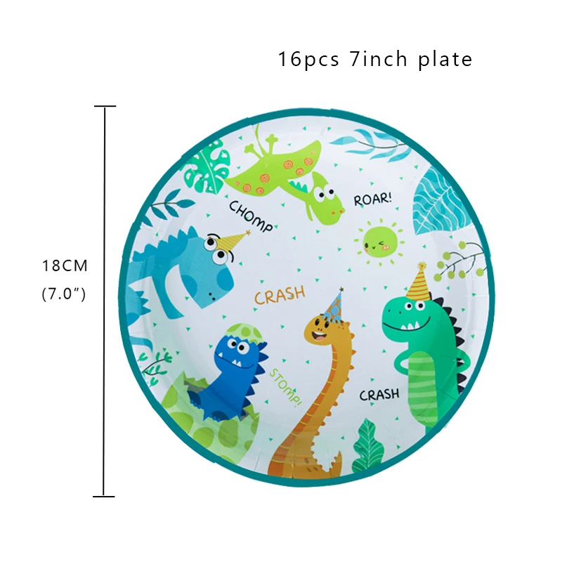 Набор одноразовой посуды в виде динозавра 49 шт., бумажные тарелки ...