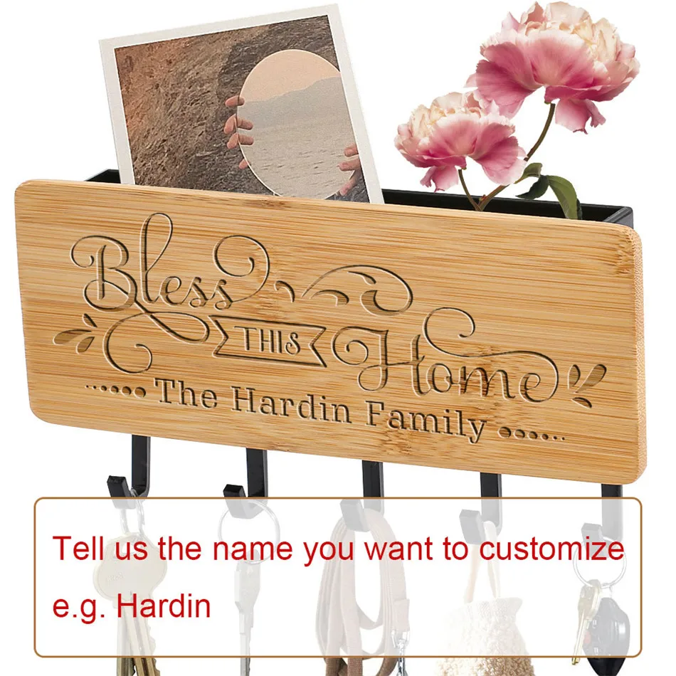 Деревянные вешалки для ключей из бамбука с индивидуальной гравировкой, семейство xxx, 5 крючков, настенная вешалка для всякой всячины