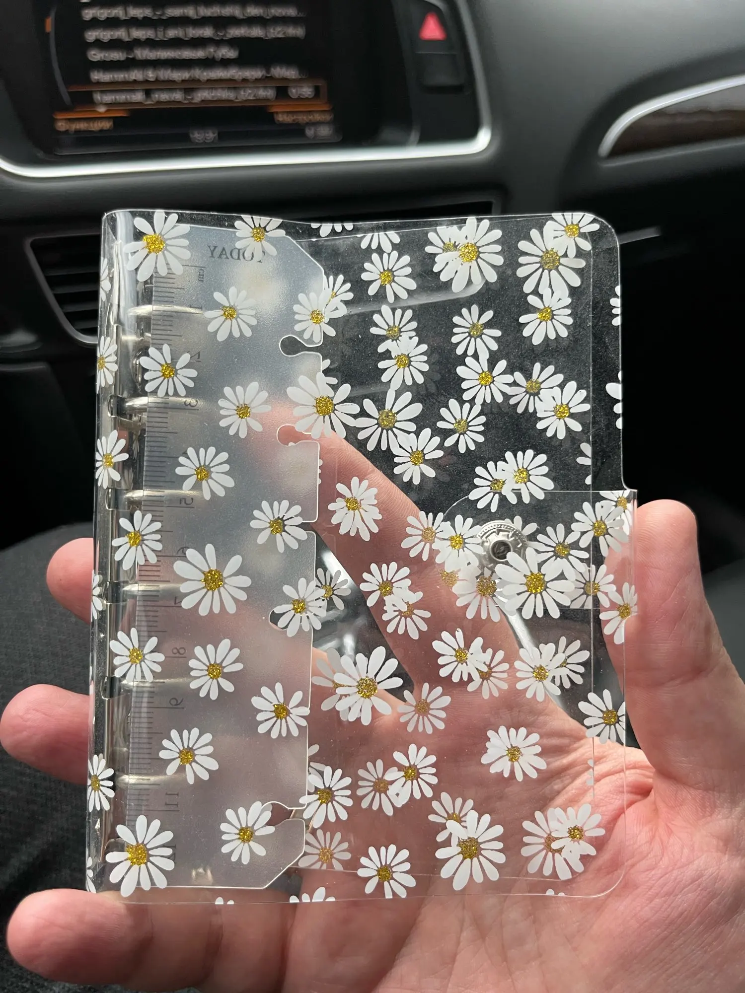 Блокнот прозрачный маленький чехол с маргаритками на 6 колец, А6А7