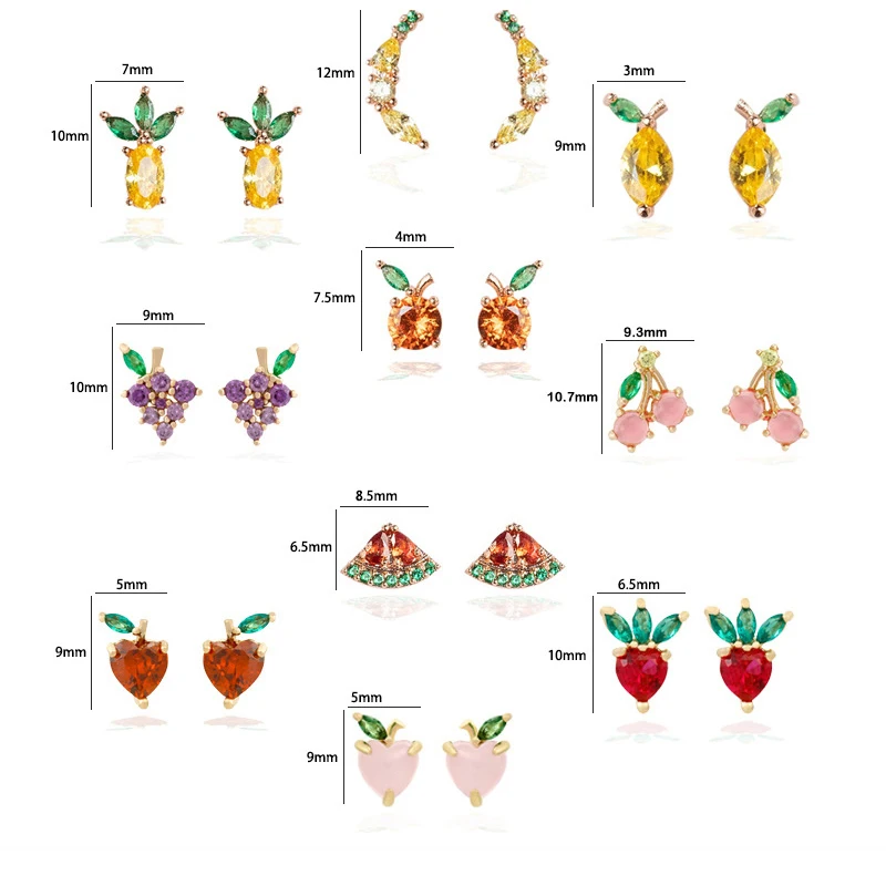ROXI медные разноцветные серьги-гвоздики с фруктовым цирконием для женщин и девочек, милые летние ювелирные изделия, серьги с ананасовым персиковым вишенком