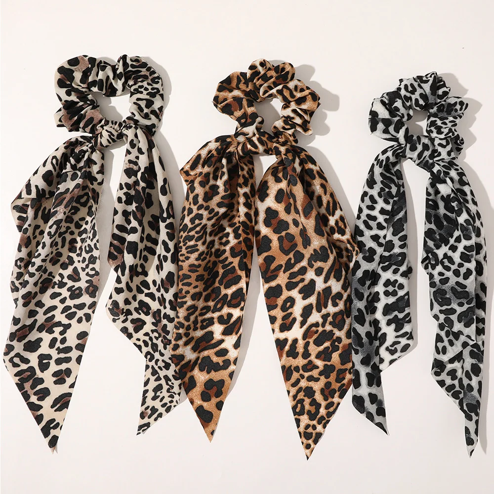 Резинка для волос женская с бантом, шифоновая, с леопардовым принтом