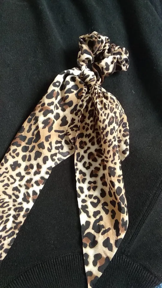 Резинка для волос Женская атласная, с леопардовым принтом и бантом