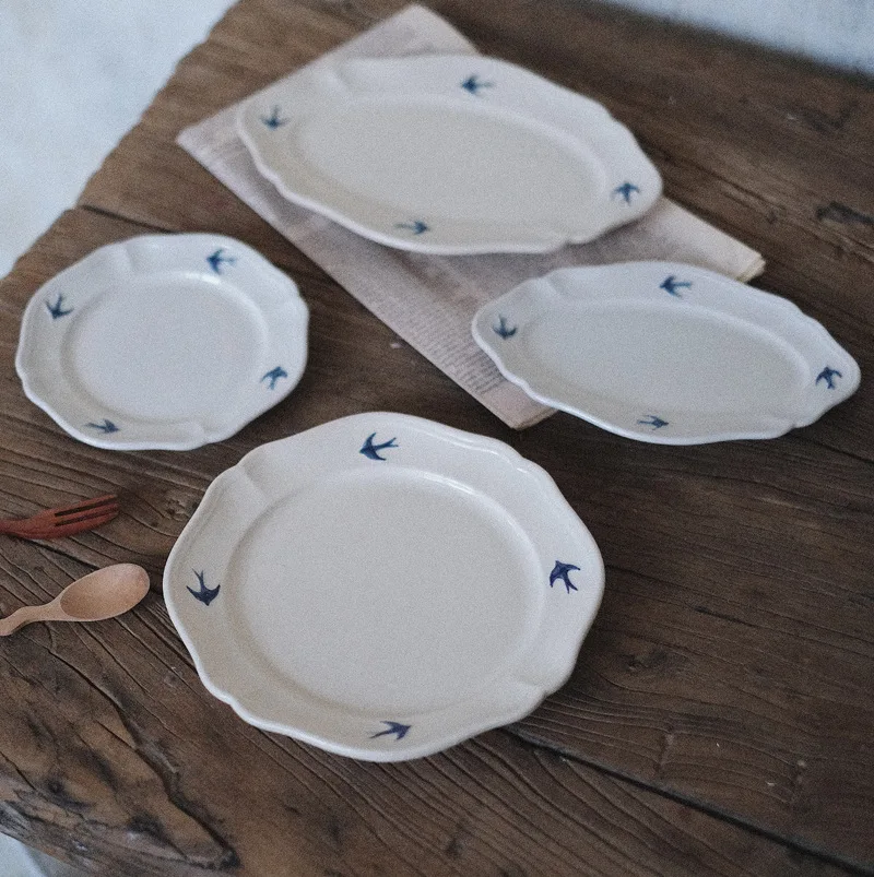 Керамическая тарелка в японском винтажном стиле с ручной росписью ласточка, тарелка для десерта в стиле ретро