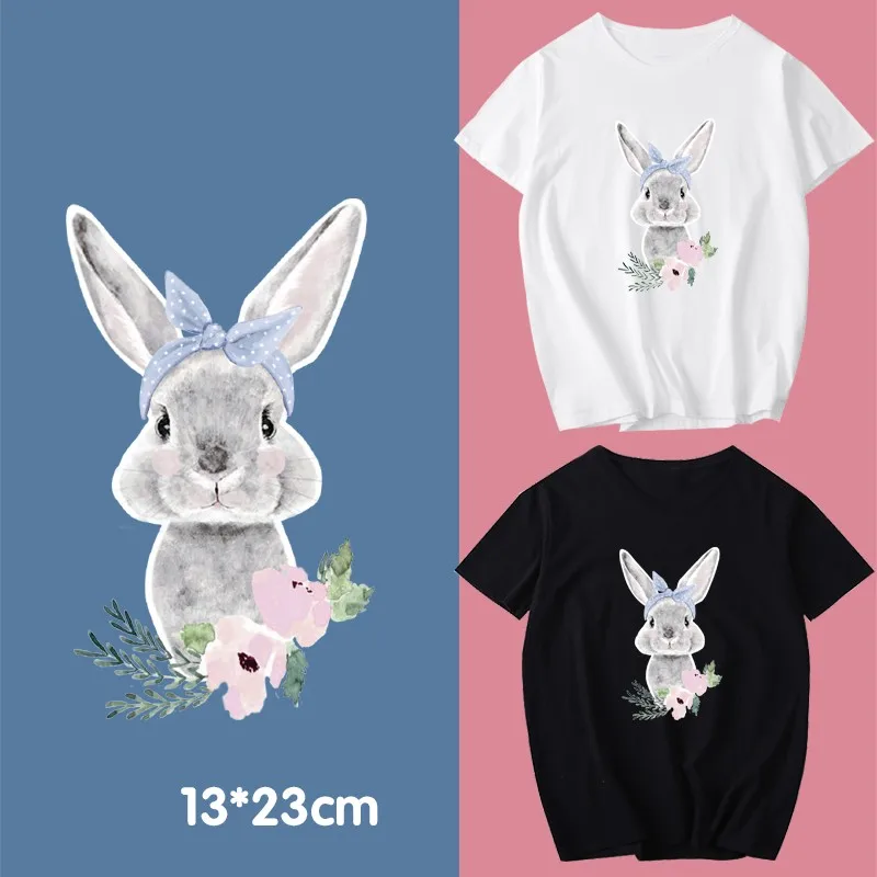 Модные Симпатичные патчи 23x13 см с цветами, кроликами, термонаклейки для самостоятельного изготовления одежды, футболок, термонаклейки, украшение, печать