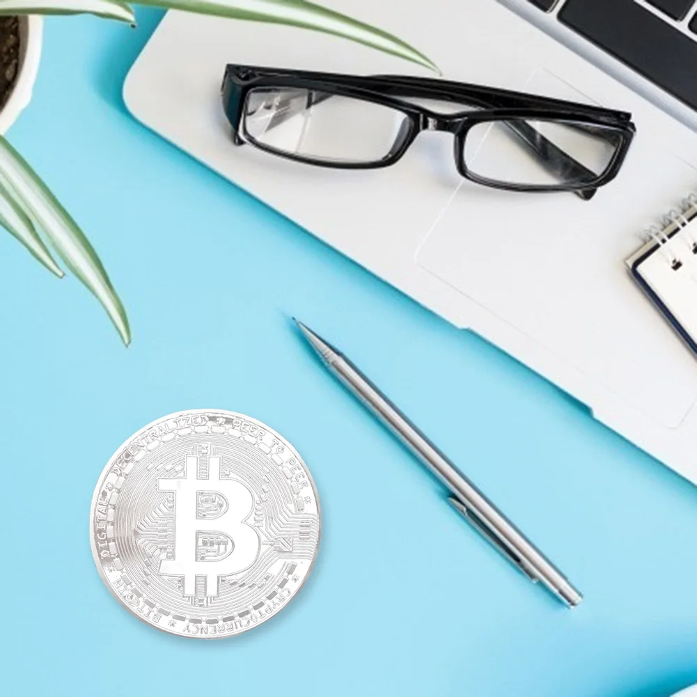 Монета Биткоин Серебристая золотистая с акриловым чехлом, юбилейная...