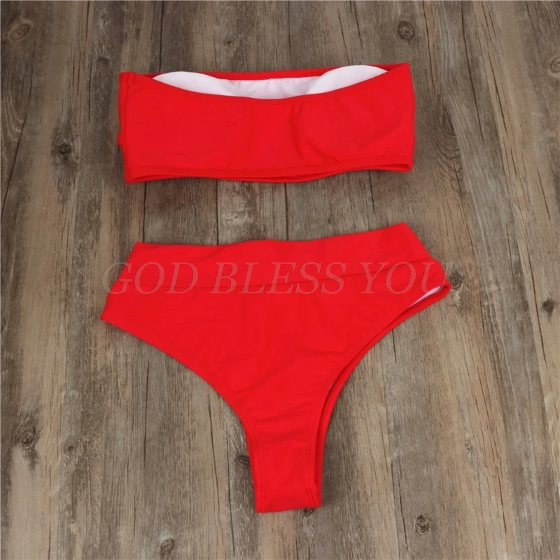 Женский сексуальный комплект бикини из 2 предметов, бандо без бретелек, съемные подкладки, купальник, стринги с высокой талией, однотонный купальный костюм, Прямая поставка
