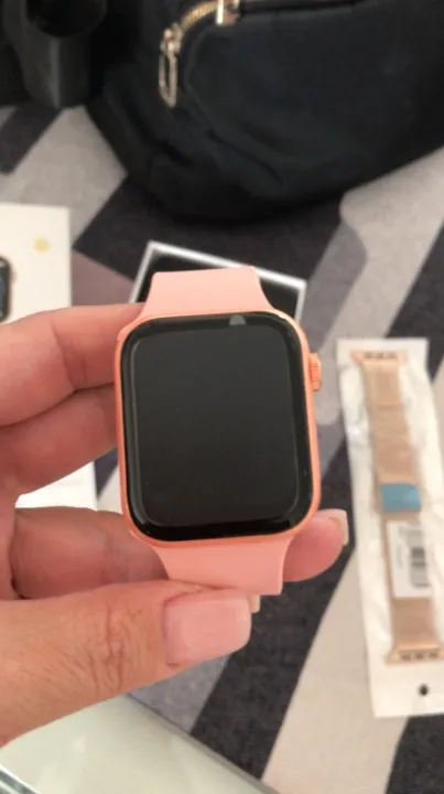 Часы очень красивые, они не отличаются от Apple Watch, на зарядном устройстве комплекта, инструкции, вторая полоса и фильм на экране. I Really Like it. Продавец сразу же ответил на вопросы. За свою цену это отличный продукт, он работает с приложением!