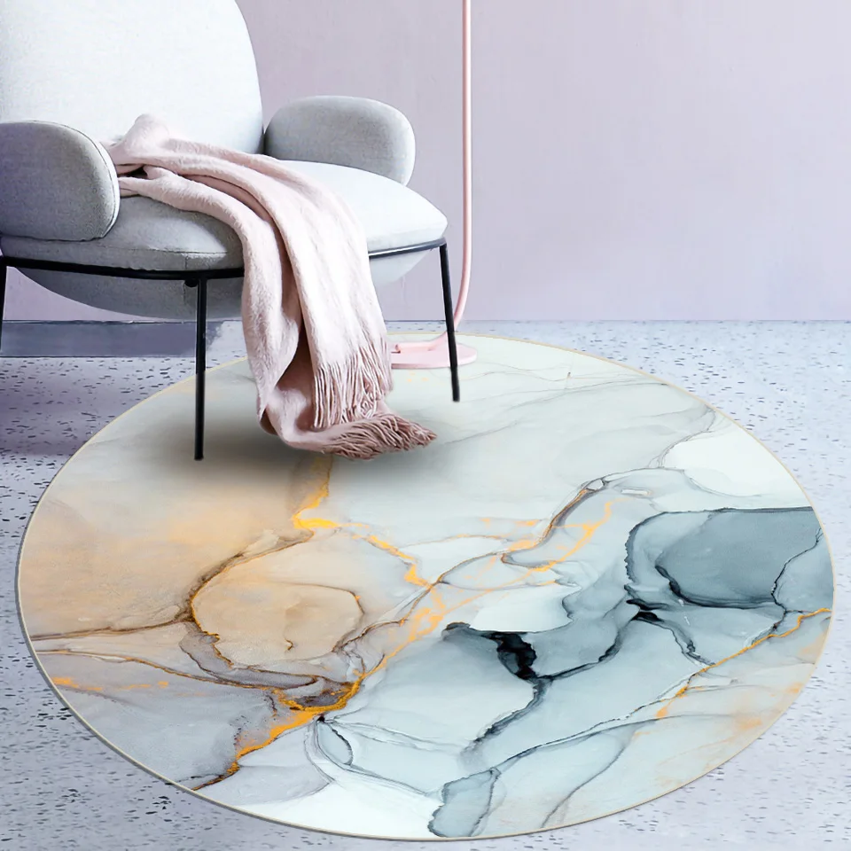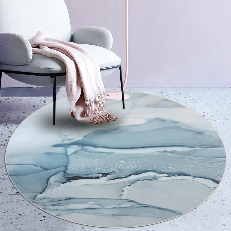 Ковер в скандинавском стиле, круглый ковер для спальни с синими рисунками, коврик для машинной стирки, ковер для домашнего декора, ковер для журнального столика, прикроватный коврик для гостиной
