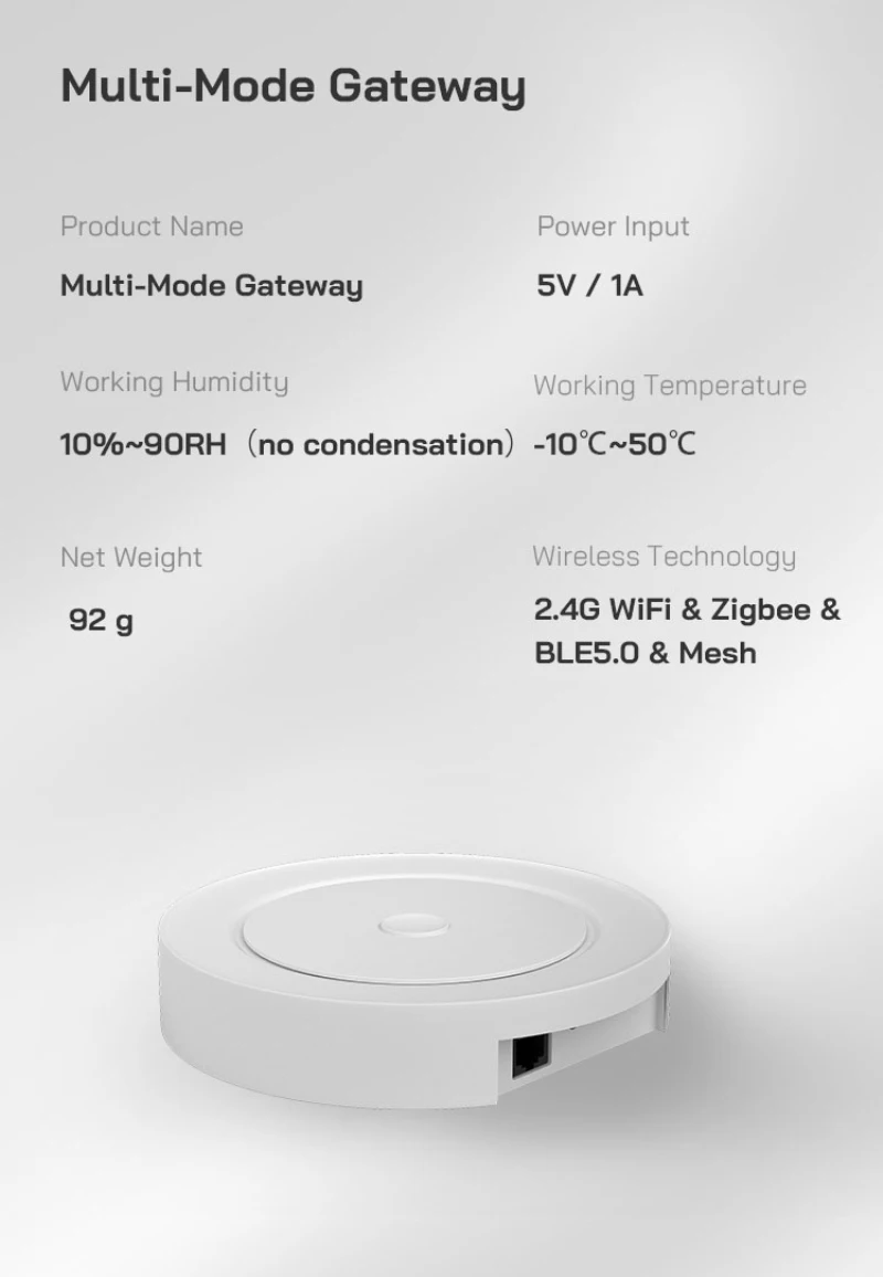 Беспроводной смарт-шлюз ZigBee, который может быть подключен к различным интеллектуальным продуктам Zigbee, и является мостовым и контрольным центром умных домов. Попрощайтесь с сетевым кабелем. Подключение к беспроводной сети, связь с облаком и мобильный телефон приложение реализовано. Пользователи могут легко просматривать и управлять различными смарт-устройствами с помощью протокола Zigbee дома в приложении. Локальная сцена и связь также могут быть реализованы при отключении сети.