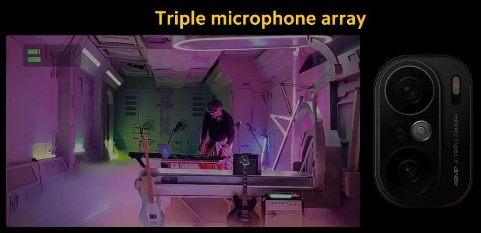 POCO впервые оснащен тройными микрофонами, которые поднимают окружающий звук на 360 °. Легко снимайте фоновый шум, записывайте панорамный объемный звук и увеличивайте громкость, чтобы четко усилить звук, который вы хотите услышать.