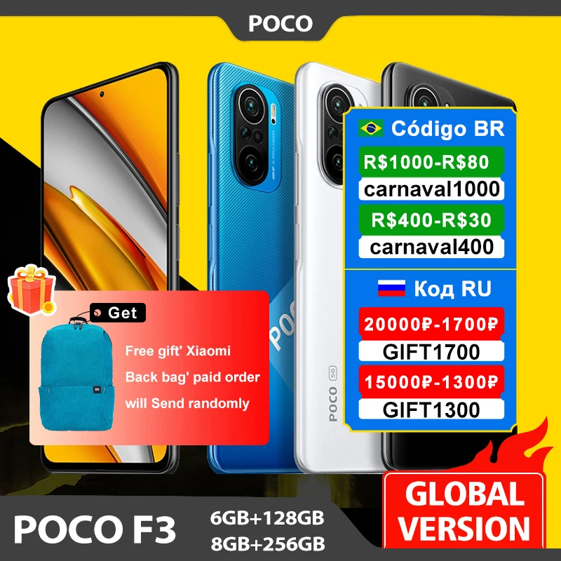 Смартфон глобальная версия POCO F3 NFC, 6 ГБ 128 ГБ8 ГБ 256 ГБ, Восьмиядерный процессор Snapdragon 870, экран 6,67 дюйма 120 Гц E4 AMOLED, 48 МП, 33 Вт