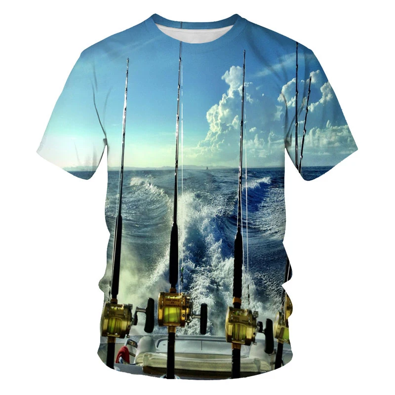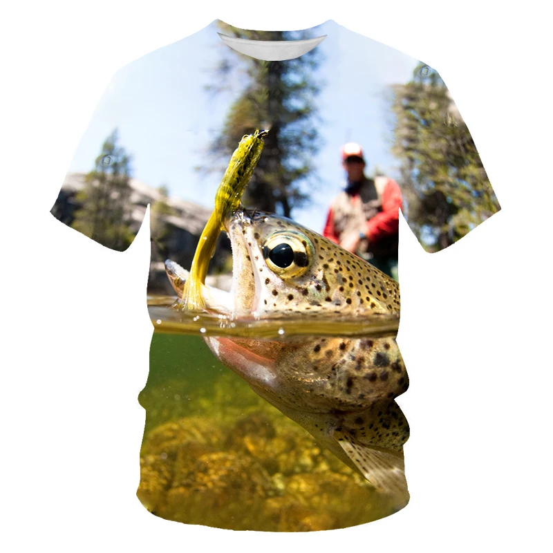 Летняя Новинка 2021, футболка с рисунком рыбы для улицы, Мужская футболка с 3D-принтом рыбалки, повседневная мужская футболка
