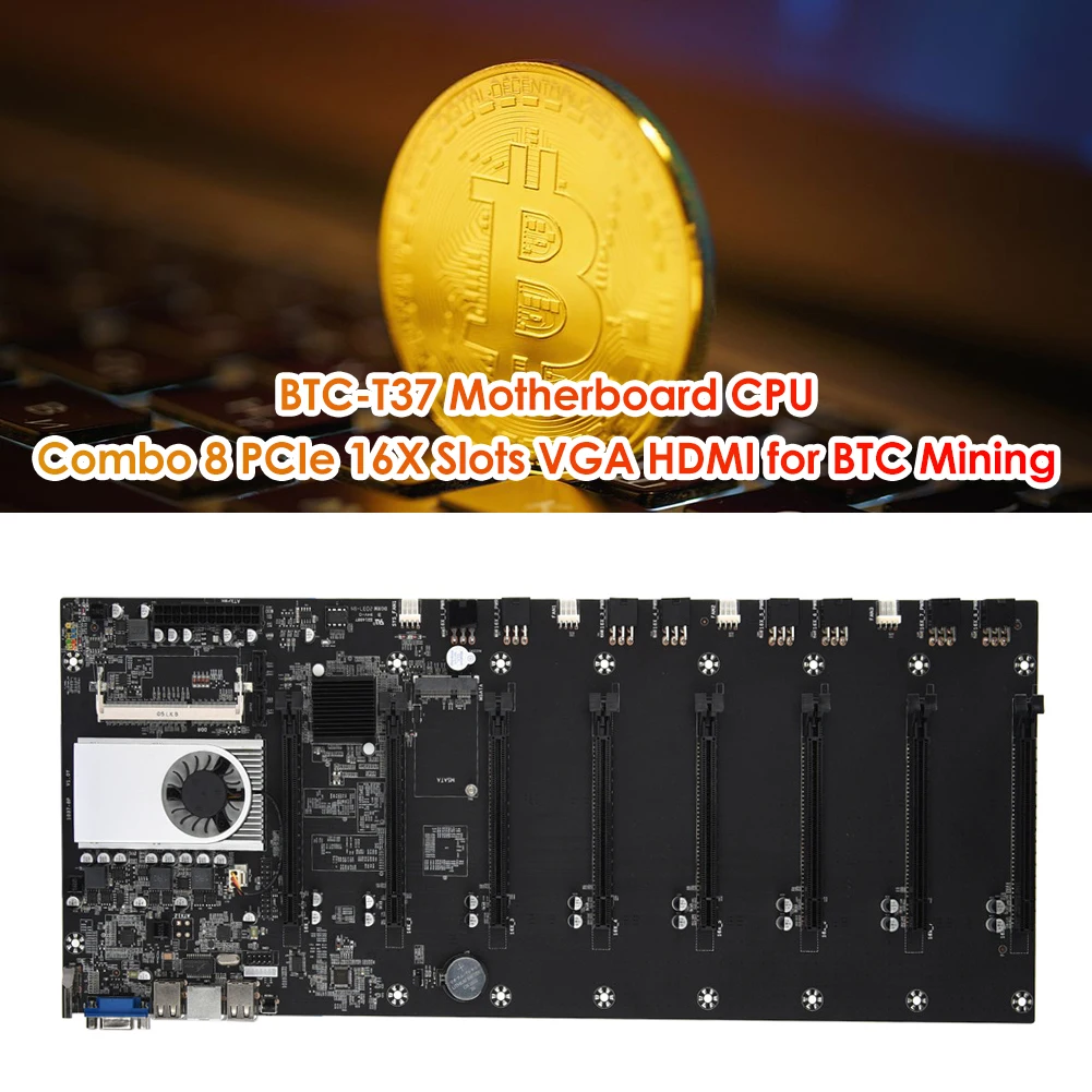 BTC-T37 материнская плата CPU Combo 8 PCIe 16X слотов VGA HDTV для майнинга BTC