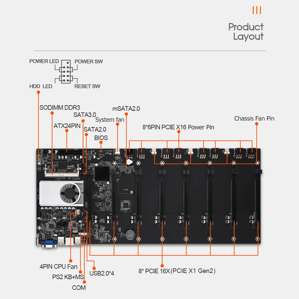 BTC-T37 Майнер материнская плата CPU расширяемый порт 8 x PCIE 16X ...