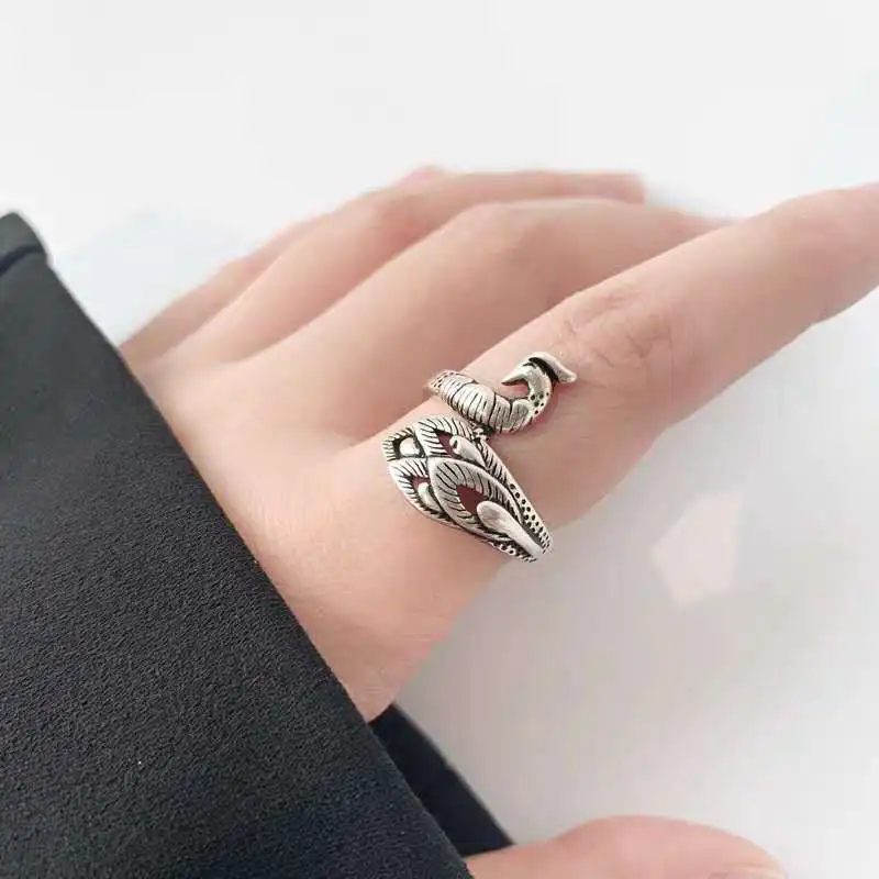 Женское кольцо в этническом стиле, с трехмерным павлином, регулируе...
