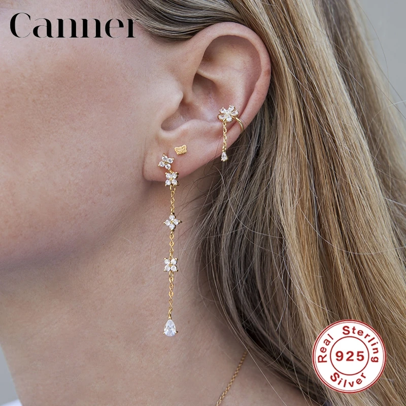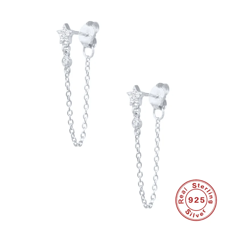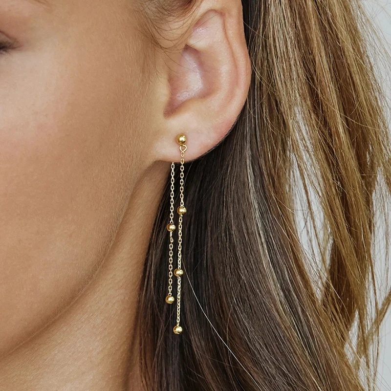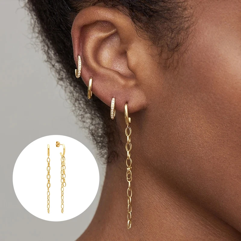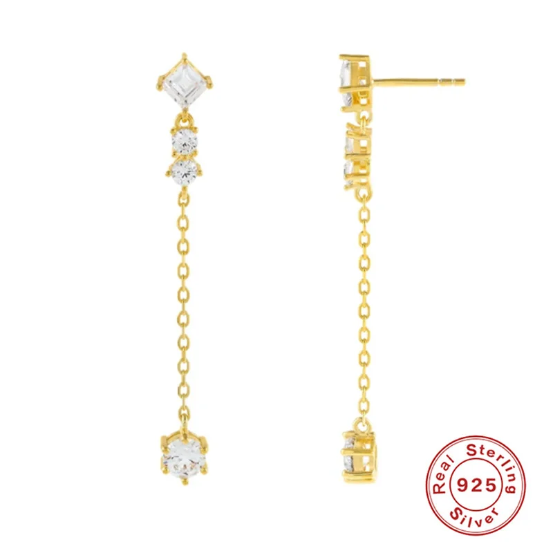 Женские серьги с серебряной цепочкой, покрытые золотом 18 К