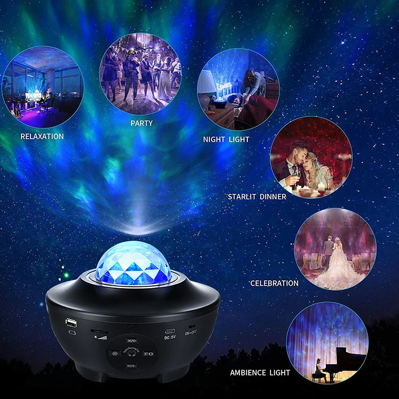 6. [Подарки для всей семьи и детей] Ночной светильник со звездным проектором подходит для дней рождения, вечеринок, свадеб, украшения комнаты, детского дня, Рождества, юбилейных подарков, это создает прекрасный и звездный способ помочь детям вдохновить их любопытство, воображение и творчество. Он также очень подходит для использования волновых проекторов, романтических поворотных огней, ночников и прикроватных огней