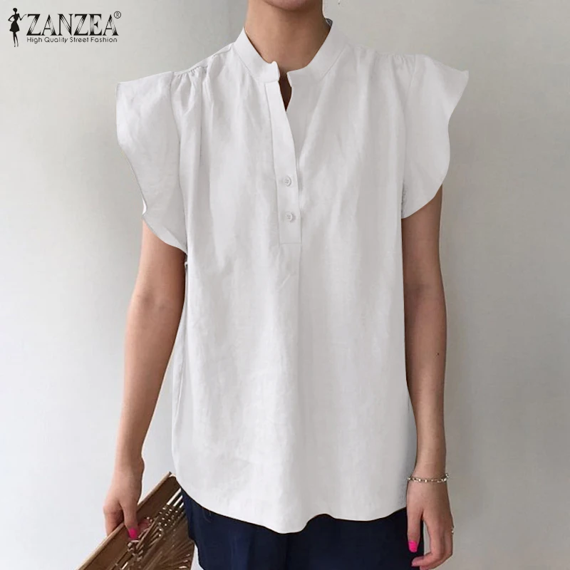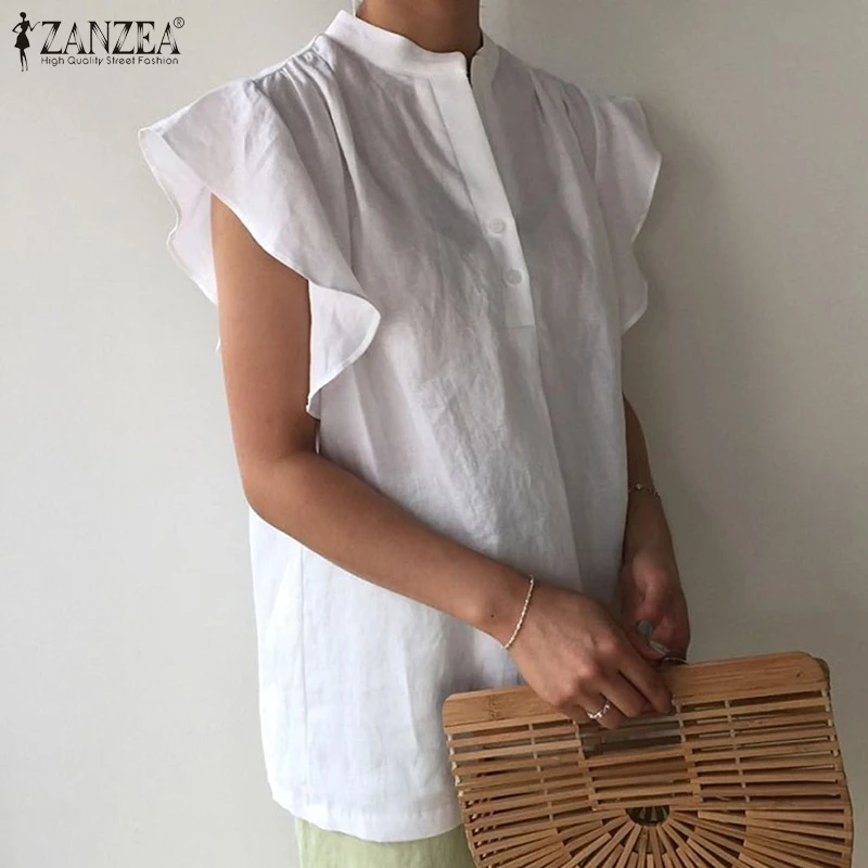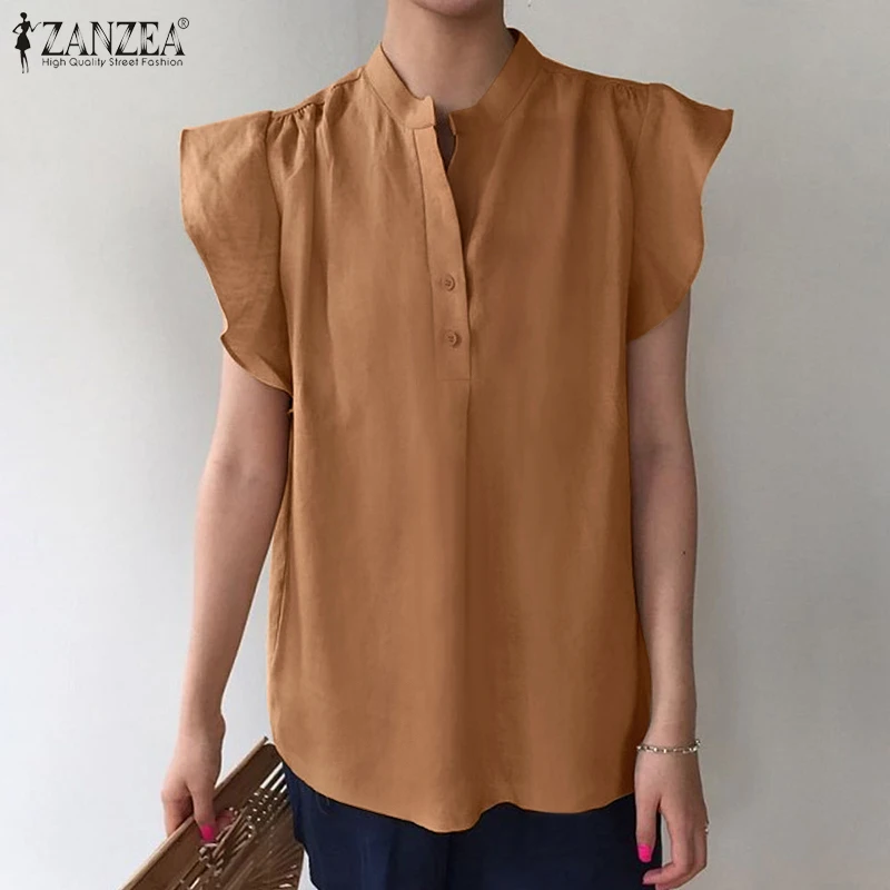 Летние топы ZANZEA 2021, стильные женские блузки с воланом, однотон...