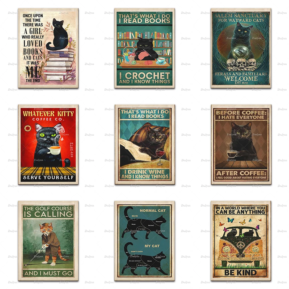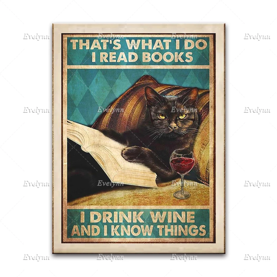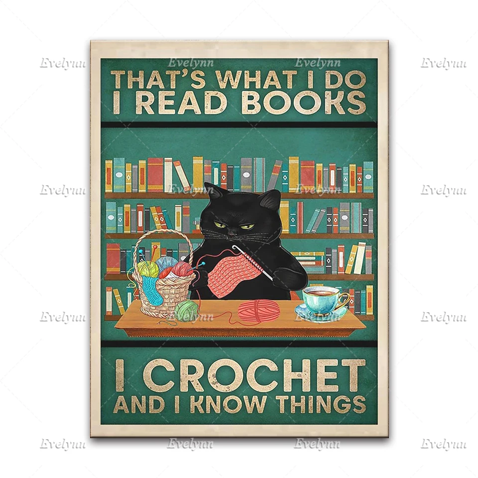 Вот что мне делать, я читаю книги, вязанные крючком, я знаю вещи, плакат, ридеры, черная кошка, настенное искусство, принты книг для влюбленных, домашний декор, холст