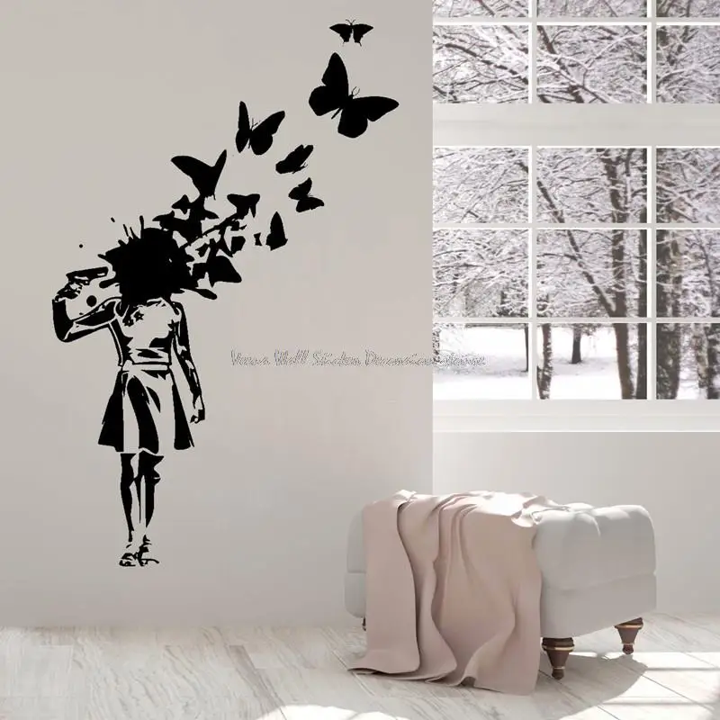 Уличные художественные настенные Стикеры, украшение дома, индивидуальная бабочка, студия, женщина, девушка, комната, дверь, фотография DY21