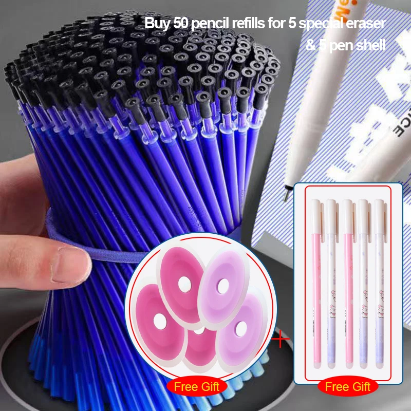 Стираемая гелевая ручка CQ, стержень 0,5 мм для легкого стирания трением, синяя и черная полная игла, Бесплатная шариковая ручка и ластик