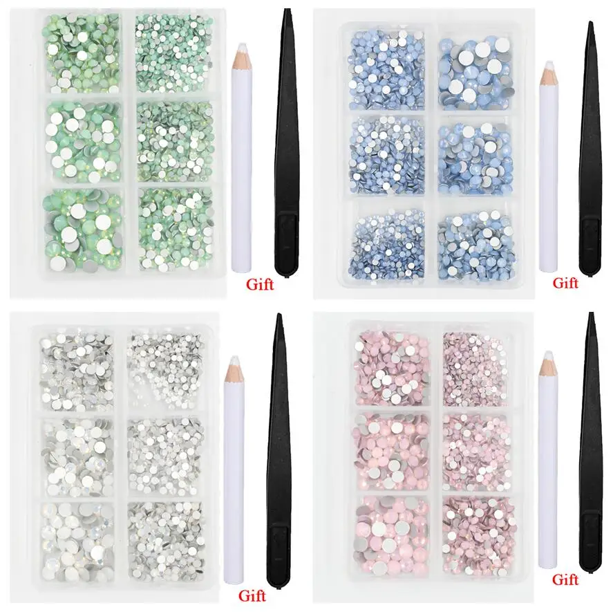 Стразы для дизайна ногтей с белымзеленымсинимрозовым опалом разных размеров, Стразы SS6-SS30, стеклянные стразы без горячей фиксации