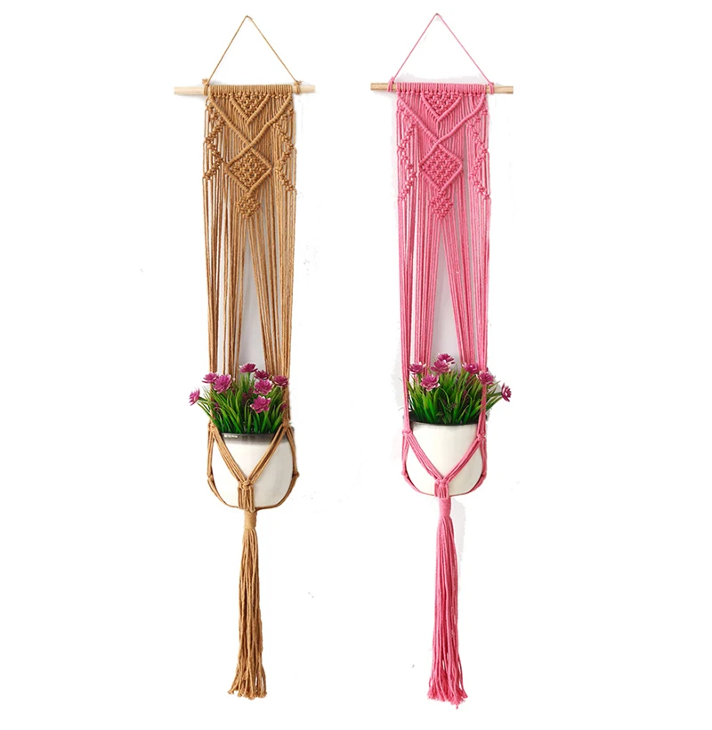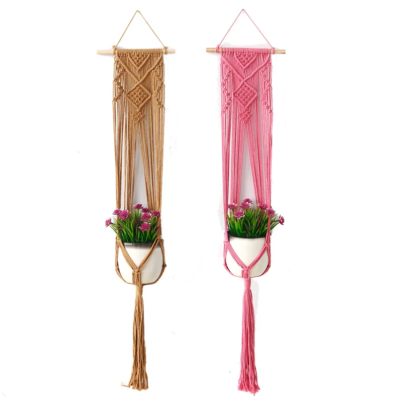 Завод подвесные вазы ручного ткачества Подвеска для растений из макраме Подвеска для цветов украшения стены Countyard подвесная корзина товары для домашнего сада