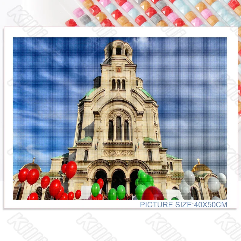 Алмазная мозаика сделай сам, рисунок, пейзаж, симметричная церковная выкладка, квадрат, круглые алмазы, настраиваемое настенное украшение icon star icon star icon star icon star icon star