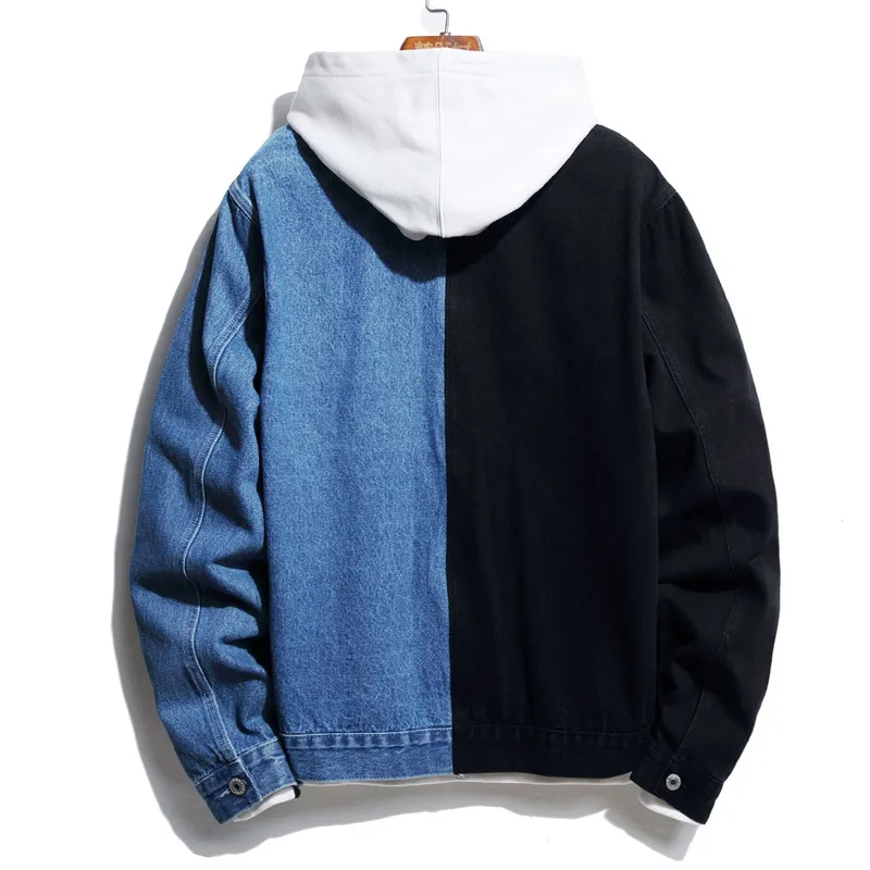 Модная Лоскутная джинсовая куртка для мужчин; Сезон весна-осень; Хлопковые повседневные джинсовые куртки для мужчин; Уличная одежда; Цвет черный, красный; Джинсовая Верхняя одежда в стиле хип-хоп